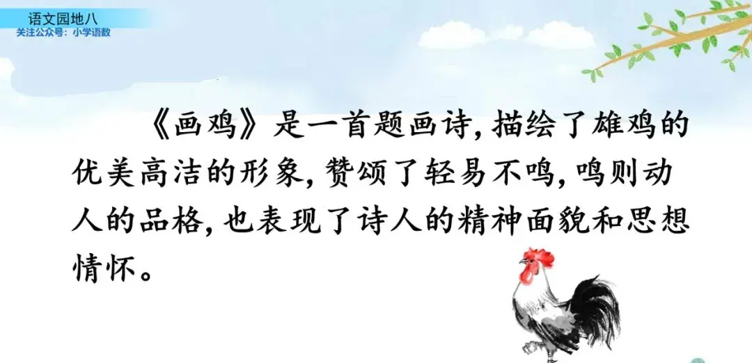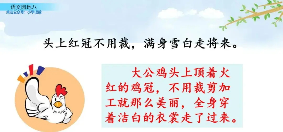头上 / 红冠 /不用裁,满身/ 雪 白/ 走将来。