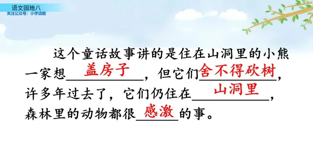 1.《棉花姑娘》最后一个自然段中的修饰词经常以填空或仿写的形式出现。