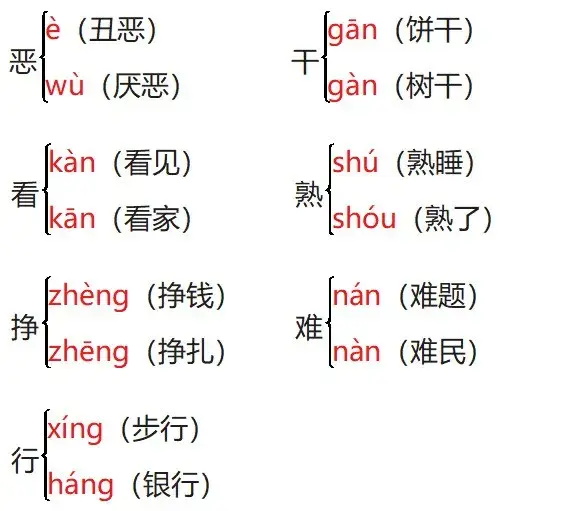 干净(gān) 苦难(nàn) 转圈(zhuàn)
