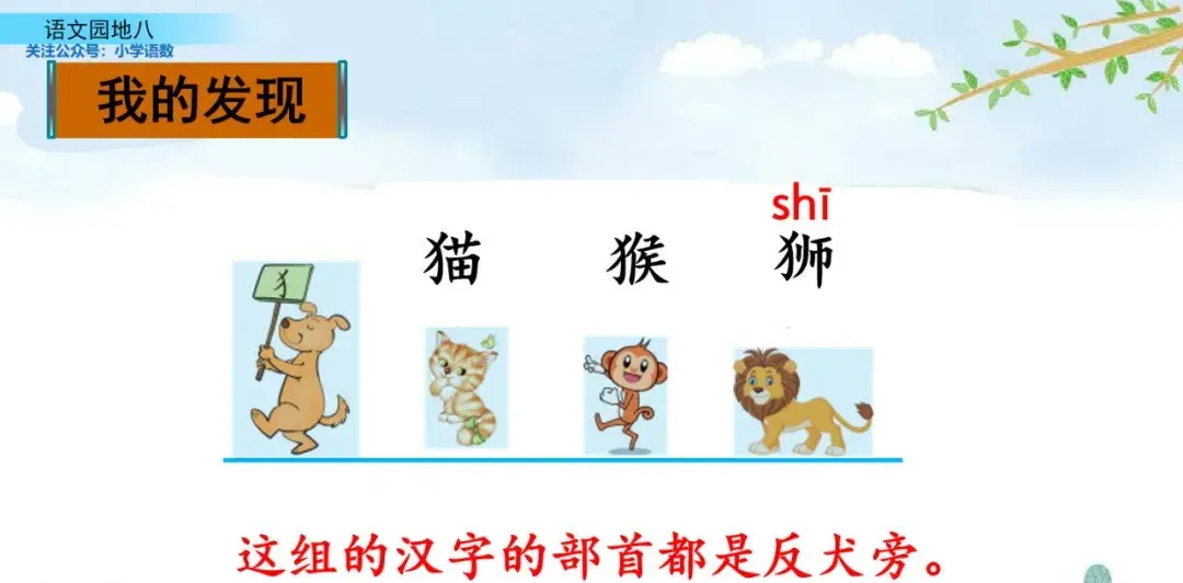 反犬旁的字大多与兽类有关:猫、猴、狮;