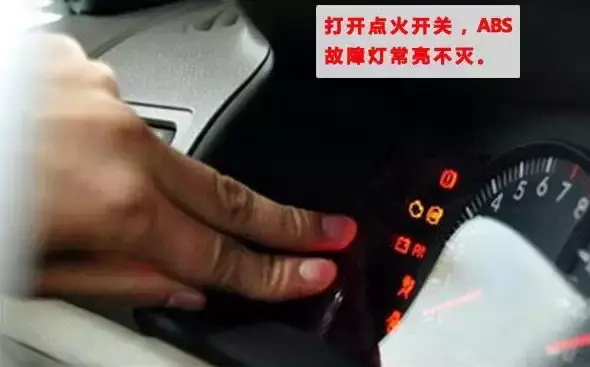 一、打开点火开关,ABS故障灯常亮不灭。